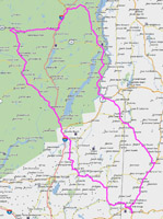 Adirondacks Ride, 250 miles. This is a ride through some spectacular scenery in NY’s Adirondacks, including some fantastic twisties. GPX file of the route is available here for GPS users (compressed in .zip format; decompress before attempting to upload to your GPS unit).