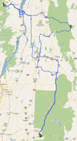 Central Vermont Ride, 190 miles. This ride offers a tour of central southern Vermont, including some nice twisty roads and a number of very small towns. GPX file of the route is available here for GPS users (compressed in .zip format; decompress before attempting to upload to your GPS unit).